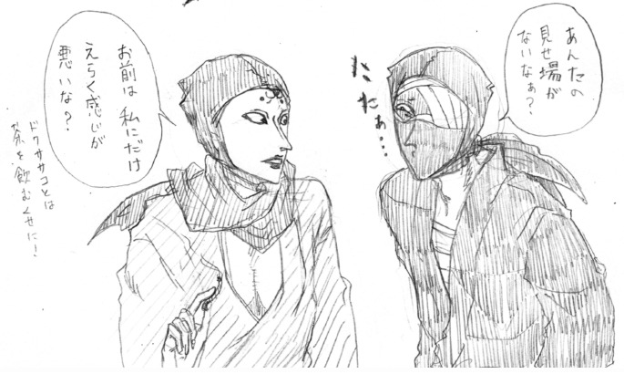 ・一方おいてこられた保健委員とタソガレドキ部下Sのところにはドクササコのふたりがきていた…