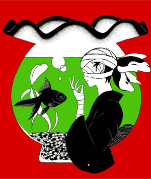 可愛すぎるので墨色に塗りつぶしちゃいましたが元絵は赤金魚でした。